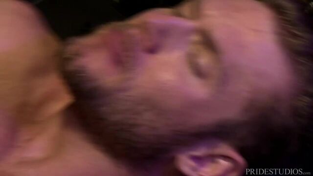 The scene opens with Ace standing alone wearing just a pair of boots and a jockstrap waiting for some action in the sex club playroom. We then see Alexander walk into the room and, like a pair of dogs, the two of them start circling each other and smelling each other. Soon they are lip locked and the heat is rising in the room. Ace drops to his knees and starts grabbing Alexander's huge cock through his jeans before pulling it out and sucking it. The blow job is aggressive, deep and sloppy with spit and gagging. Alexander then bends Ace over a sex bench and rims his ass while playing with his cock. Alexander then drives his massive uncut cock deep inside Ace's eager ass. Ace grinds his ass on the cock and begs to be fucked hard. Alexander then fucks Ace on his back so deep that Ace shoots his load and then drops to his knees so that Alexander can feed him his load. Enjoy!