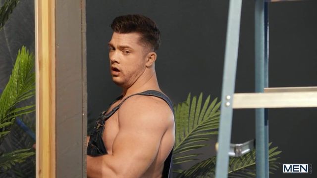As burly window-washer Collin Simpson sets up his ladder and cleans the windows, Tannor Reed poses on the other side of the glass. The twink flashes him and shakes his booty, then sneaks up behind Collin and licks his ass. Tannor gets so turned on, he jacks off his cock and jizzes on the newly clean glass! Mopping up cum isn't in Collin's contract, so Tannor offers the horny top a special bonus, sucking his dick and climbing into Collin's ladder to let him fuck his mouth. The acrobatic twink bends over to let Collin go balls-deep in his ass, then hangs off the ladder for hard mish before he rides Collin's cock and takes a facial!