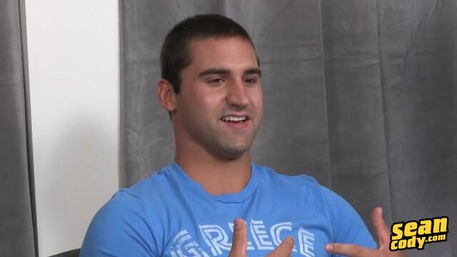 Ah, Brennan. Here was a hunky, hairy, cuddly guy wearing a &Greece& t-shirt and looking all dark and Mediterranean.You are Greek?& I asked. Small talk, but a good way to break the ice.Yeah,& he replied. He was kind of shy and looked at the ground when he answered.Things are kind of crazy over there right now, right?&Um,& he said. &I'm not sure about that. I've never been.&Oh?&Yeah, my grandparents are from there, but I was born here.Sweet... an American boy with Greek !He's kind of quiet and sweet, but he's also a jock... lacrosse, football, and track in high school. Now he's an avid snow boarder.And here's the other thing that let's you know he was born in America — he's cut. His cock is really nice, but it's his balls that are truly spectacular. They are big and they hang low!