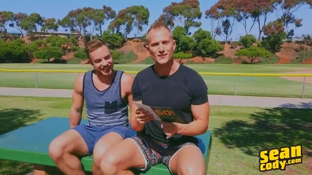 - Description: It's my anniversary! says tall, blond hunk Blake as he opens his card. This is Blake's fiftieth scene here at Sean Cody, and he's sure to make it a very special time for everyone...especially his cute costar Cam! These guys toss a beach ball around the park to work up a sweat, roughhousing a little and flashing their asses, then head back to the house where Blake gets right to work tonguing Cam's tight hole. "You really know what you're doing back there," Cam exclaims, then moans as Blake eases his cock into his ass. After Blake cums, he wants to continue the anniversary celebration by taking Cam's cock!