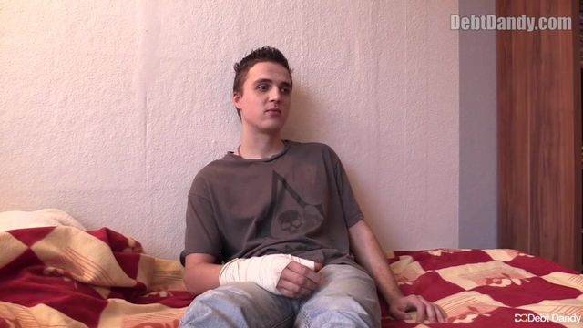 Relationships at work can often be tricky. One stupid colleague can make the time you spent in the job unbearable. This boy had to put up with a co-worker who was frequently under influence of various stuff. They both worked at a warehouse and our boy had to listen to insults from this guy every day. A few weeks back he finally lost his temper and hit him in the face. The guy learned the lesson but our boy broke a thumb during the fight. He lost his job and had to stay home on benefits. He ran out of money fast and his debts started piling up. So he called me and asked for 25 000. I was in a bit kinky mood so his plaster cast kind of turned me on. He was very much against any physical contact but I managed to talk him into it. He was at my mercy, anyways.