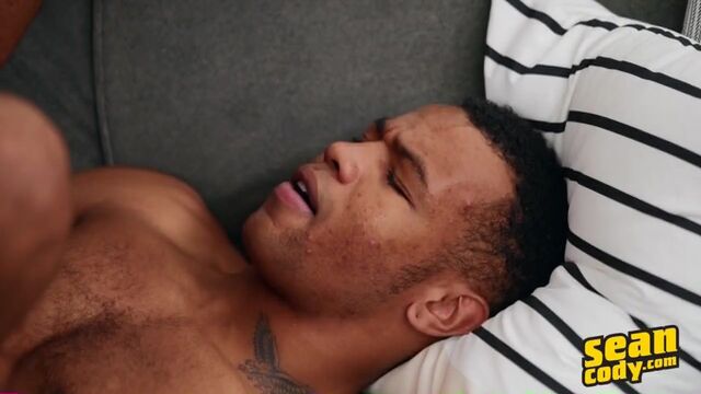 You want to suck this cock? stud Blake asks cute ebony Ace after the pair return to the Sean Cody studio from a romantic walk through the woods. Ace doesn't need to be asked twice, and he barely even takes the time to say "Yeah!" before swallowing Blake's huge meat. Ace hops into Blake's lap to ride that hard dick, and gets plowed hard in doggystyle while jacking it till he cums just as hard. Perfect gentleman Blake has been waiting for that signal so he can pull out and shoot a huge load on Ace's ass.