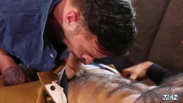 Couples counseling turns sexy when the therapist suggests some one-on-one and the two-man session gets hot and heavy.