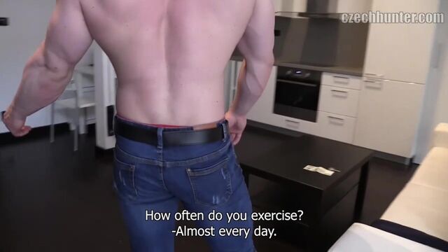 - Description: I was chilling out and looking for a nice catch when I saw this guy. He was easy to spot. A tall and huge boy. And I mean huge! I used my blog about athletes excuse on him and he swallowed the bait easily. He definitely wanted to show off. So I took him to a nearby work out place and paid him to exercise for my amusement. Half-naked, of course. The boy was a bodybuilder hence the view was simply gorgeous. All those pull-ups made me terribly horny. I just didn´t want to make him angry with some inappropriate proposition. Then he told me about his financial problems and I offered him a nice way to solve them. I was lucky because the guy was very open-minded, I think he even had a gay experience. Or maybe he liked me, who knows.