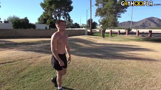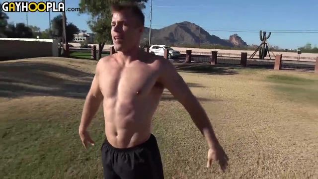 Super athletic ninja warrior Michael Kasten is a physical machine. He shows off his incredible agility and rare core strength. Watch him jerk the most important muscle he offers in that thick cock.