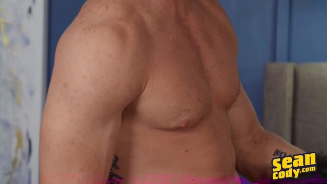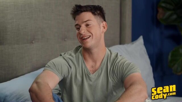 Jax has some hot and naughty questions for Archie, like whether he prefers the lights on or off during sex. "Lights on. I like to see what I'm working with," Archie answers confidently. Archie's got a few questions of his own, and Jax blows the vers hunk's mind when he says that although he's a top, the sex toy he could never do without is a dildo. "Nothing gets me busting bigger loads than a fuckin' dildo up my ass. That's a dirty little secret of mine." Archie can't wait to experience the same phenomenon with Jax's huge cock in his ass, and their hot fuck soon has both of them busting huge loads!