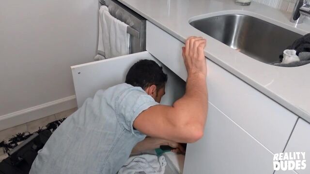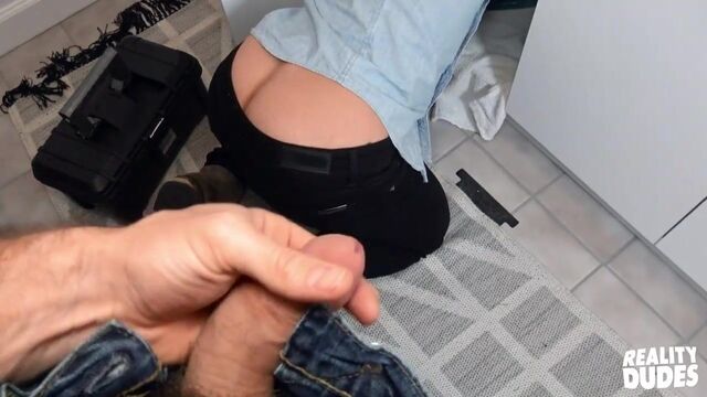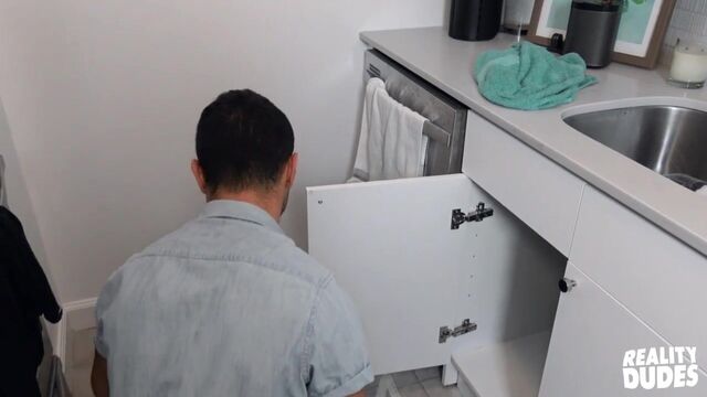 Plumber butt is a cliche for a reason, and when hot plumber Ian Greene came over to fix my sink, he bent over and gave me such a nice view of his ass, I had to take my dick out! Ian caught me with my cock in my hand, and was hesitant at first until I offered him cash to jack me off and suck me. After an awesome blowjob, he agreed to let me fuck him for another four hundred. It was pricy but worth it as I pounded him doggystyle against the counter, then he rode my cock on the floor. I fucked him mish till I pulled out to cum all over his hole, then he jacked off and blew a big load!