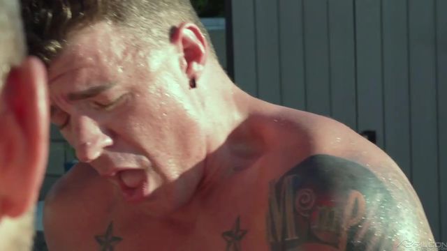 Tristan Hunter, Johnny Ford and JJ Knight are all getting hot and heavy with each other, making out in the pool. The men pop out of the pool and slip into the jacuzzi where Tristan gets to work sucking JJ's massive cock, while Johnny rims Tristan's ass. After Johnny has prepped Tristan's ass with his tongue, he works his cock in Tristan's tight ass while JJ continues ramming Tristan's throat. Tristan stays the center of attention, going back and forth between cocks up his ass from both Johnny and JJ until Johnny gets bent over and stuffed with JJ's pole. Johnny makes sure not to leave Tristan out when he tongues and finger fucks Tristan's ass while JJ pounds him bareback from behind. Tristan wants more and backs up on Johnny's cock to create a raw fuck train with Johnny in the middle. After everyone has had their fill of cock and hole, each stud jerks out warm loads on each other, using everyone else's cum as lube to get themselves off.
