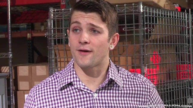 Supervisor Sebastian Kross finds it amusing making hunky employee Mike De Marko spill an entire box of rubber dildo's all over the floor. As Mike is on his knees picking up the mess, Sebastian suggests that Mike should suck on the real thing instead. After deep-throating Sebastian's fat cock, Mike is on his back, spread eagle for Sebastian to drive a huge dildo into his tight hole. Alternating between smooth strokes of the dong and sucking Sebastian's cock, Mike yelps out 'give it to me.' When Sebastian feels Mike's hole is prepared, he bends him over a palette in the warehouse and stuffs his ass with 8' of his hard cock. Railing and pumping his hole in multiple positions, they both exclaim moans of complete pleasure. When it comes time to climax, Mike is on his back once more stroking his load out onto his furry abs as Sebastian continues to drill his hole. Sebastian pulls out and adds his hot load to Mike's.