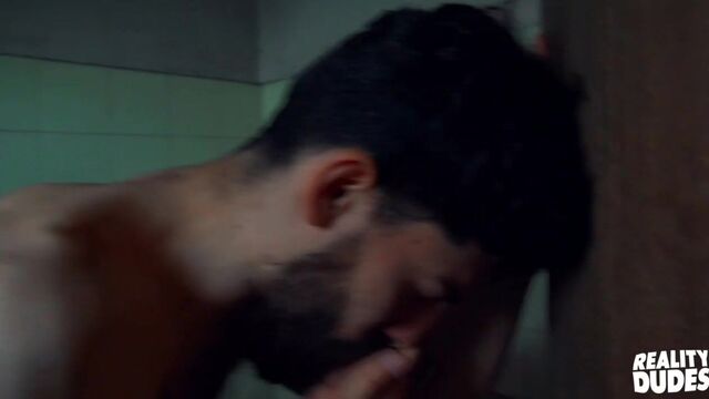 When these bearded studs get horny, they sneak into an abandoned bathroom where they can get as nasty and messy as they want. After a super sloppy deepthroat blowjob, the top pounds the bottom's tight hole doggystyle. This pervy pair are so in sync that as soon as the top gives him a hot facial, the bottom cums too.
