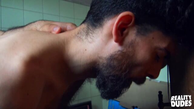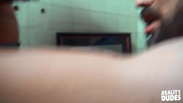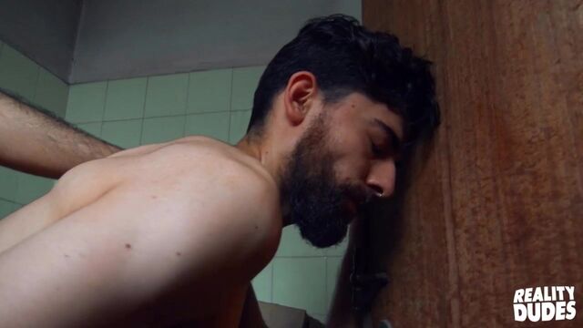 - Description: When these bearded studs get horny, they sneak into an abandoned bathroom where they can get as nasty and messy as they want. After a super sloppy deepthroat blowjob, the top pounds the bottom's tight hole doggystyle. This pervy pair are so in sync that as soon as the top gives him a hot facial, the bottom cums too.