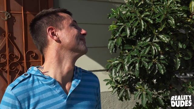 When I saw Wolfie Blue looking upset after getting his car towed, I thought I could help this cute stud out with some cash... and maybe he could help me out too. I offered him a quick hundred bucks to show me his dick, so he came back to my place and got out an impressively big boner. For another $60 he let me play with it, but this straight guy really wasn't sure about touching me, until I offered him enough to pay his whole parking fine if he'd suck my cock and let me fuck his ass. Wolfie seemed to like it quite a bit as I pounded him doggystyle and mish, and he jacked himself off as I pulled out and jizzed on his tight abs.