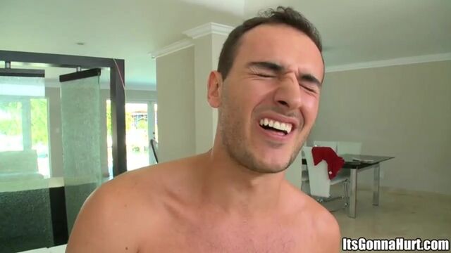 Wow this guy was not ready. This week's itsgonnahurt update is crazy. We brought in this cat Santiago for an anal pulverizing session and let me tell you all he was not ready. He said "It hurts like hell" and we said "NO shit! The site's called Itsgonnahurt.com". The weirdest shit happens when Santiago first gets the black pipe stuffed into him. I want to tell y'all but I would hate to be a spoiler. So watch this video and dream and who knows you could be next!