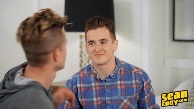 Four years after shooting a solo, Garrett is back at Sean Cody for his first-ever sexual experience with a guy, and lucky Nikolai will be the one showing him the ropes. Garrett explains, "It's all new to me so I'm really just trying to stay focused and sexy." Nikolai helps to break the ice with a kiss, then asks, "Yea or nay?" "Yay!" is Garrett's reply as the guys make out and get naked. Nikolai blows the newbie's mind with a blowjob, then Garrett eats his hole and fucks him doggystyle before cumming on his face, but Nikolai wants more of that cock before he's done.