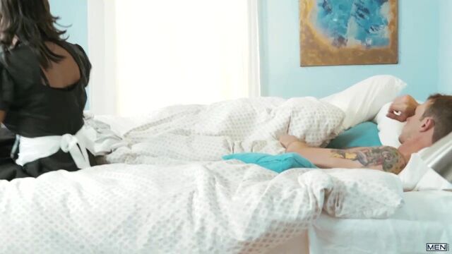 Cliff gets a surprise a.m. visit from an eager cock hungry Tobias. He goes all the way down getting it ready and wet enough to drill his hole. Unfortunately for Cliff, the maid catches him in full action! His wife definitely won't be happy about this.