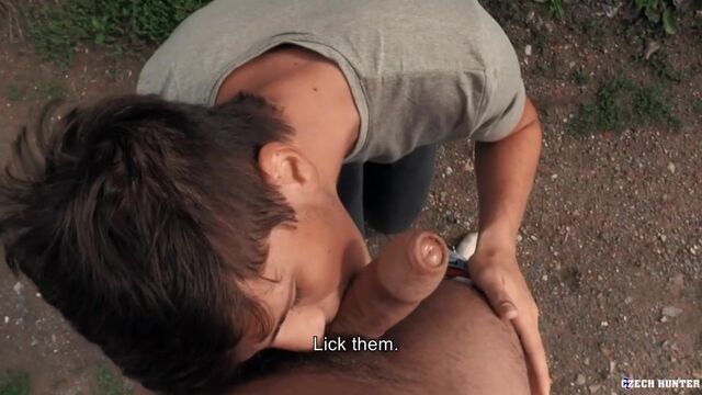 Sexy young salesman gets fucked in the woods - Czech Hunter