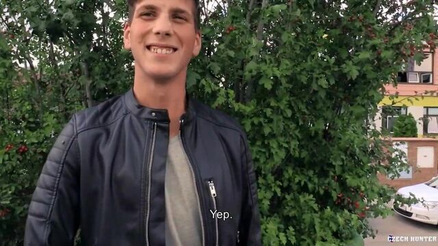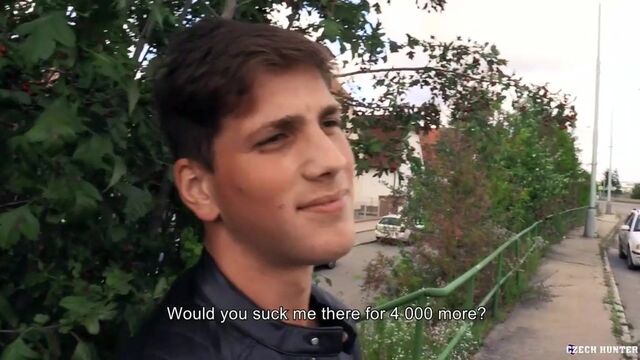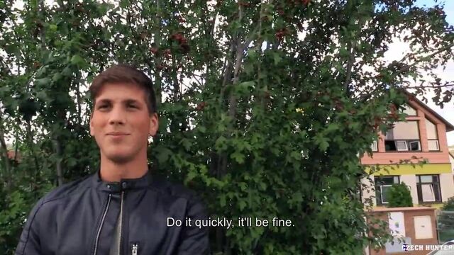 The Czechs hate door-to-door salesmen, there are even some laws in place to regulate the practice. That's why I was surprised to meet this cute guy going around and trying to sell electricity contracts to random people. The dude was very handsome, so I started a little conversation. Fortunately, he was nice enough to have a chat and easy to convince to make some easy cash on the side. His job wasn't going that great, probably because you have to be kind of ruthless in order to succeed. And he was just so nice and cute. When I saw his huge dick, I knew he was the one. I offered him enough to follow me to a nearby forest, where we found a nice secluded place. The guy was really good at taking care of my cock. He moaned loudly when I put it in his ass, but I bet it was more fun than door-to-door sale.