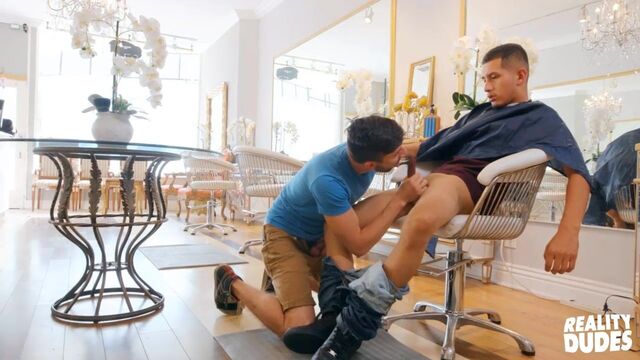 Scott DeMarco and Roman Blake in a barbershop anal scene - Reality Dudes