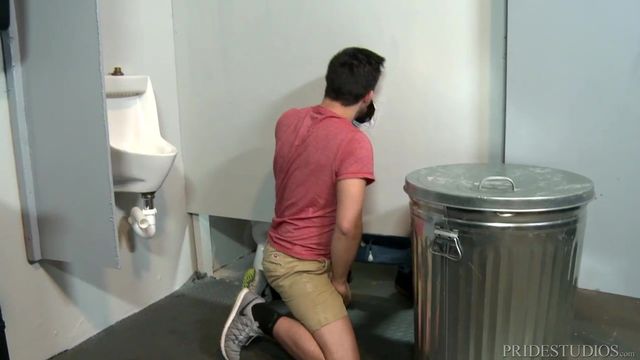 Alexander Garrett is ready to have his big cock serviced through the glory hole in the bathroom stall. Alex Gray enters the washroom and hears a noise coming from the stall and as he investigates he discovers a huge uncut cock on the other side of the glory hole. He starts out stroking it with his hand and then drops to his knees and starts worshiping it. After a while Alexander comes out of the stall and continues to face fuck Alex with his big uncut cock. Alexander then bends him over a trash can and rims his ass and plays with Alex's cock and balls. He then begins to fuck Alex slow and deep bent over the can before putting him on the floor until Alex blows his load. Alexander pulls out and shoots his thick load all over Alex's stomach and then Alex milks the rest of the cum from his cock as the two embrace in a kiss.