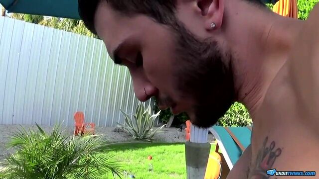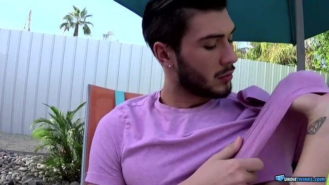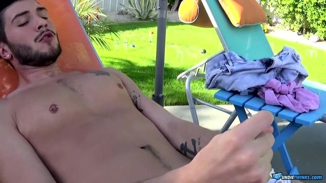 Justin is always playing with his cock. The handsome young man is forever getting horny and when his dick starts to throb in his underwear he can't say no to stroking out his load. He especially loves these tight undies, they feel so good against his cock and ass, he's soon playing with his throbbing dick and teasing his eager hole, almost begging for someone to come along and stick their tongue into him. We all would, and we would suck that cock for him until he's pumping all those milky mess into our throat! Watch him in action by the pool and imagine being there to help him.