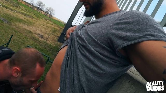 Marty and Jerome are two horny European dudes who aren't going to let a busy motorway stop them from getting their dicks wet. The hard-bodied studs swap blowjobs as cars cruise by mere feet away, filming the whole thing! They take turns pleasuring each ot