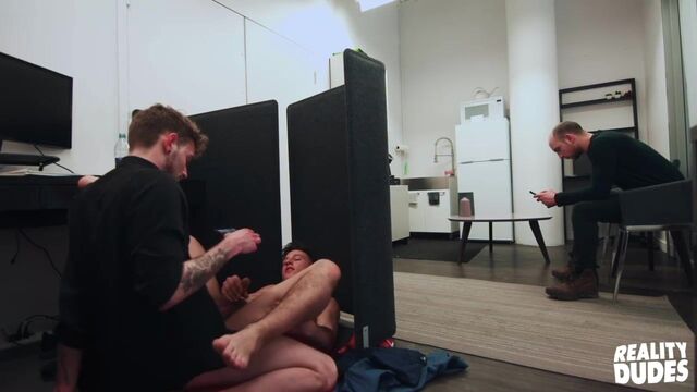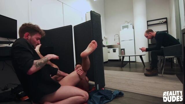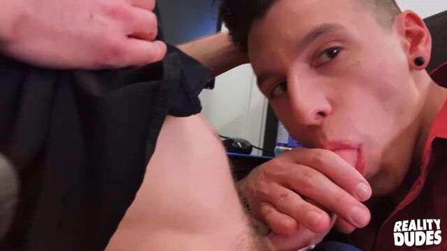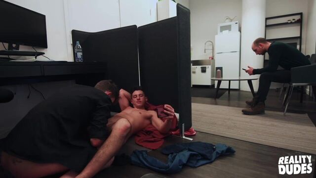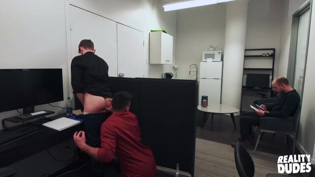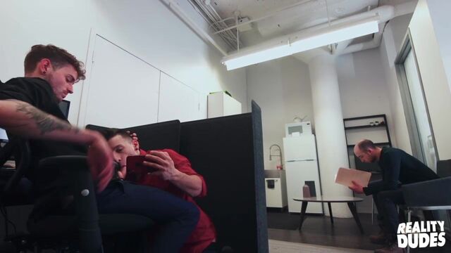 - Description: Fit cutie Collin can't keep his eyes off the scruffy, tattooed receptionist Eric. Even though they're both in a busy waiting room, Collin can't resist taking out his phone and recording himself sneakily stroking his cock while Eric struggles not to stare. The tall, curly-haired stud calls Collin behind the desk to service his thick dick with his tongue and hole while everyone else in the office is none the wiser.