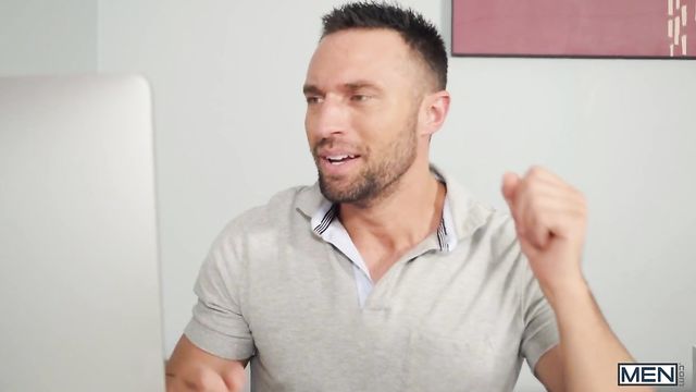 Colby Tucker's new assistant Jake Porter may not be an incredible asset to the office culture, but the view he provides when he's bending over backwards for the boss makes him more than worth retaining. However, the sexy bearded Colby can't shake the feeling that he's seen Jake somewhere before. When Colby realizes that he recognizes the athletic assistant from the world of gay pornography on the internet, he realizes that there are some additional tasks that Jake is more than qualified to take on. Jake crawls under his boss' desk and gives him a deep and intense blowjob, taking Colby's thick cock all the way down his throat. Colby pulls Jake up onto his desk, spreads his legs and gives him a plowing that will have the typing pool talking for weeks.