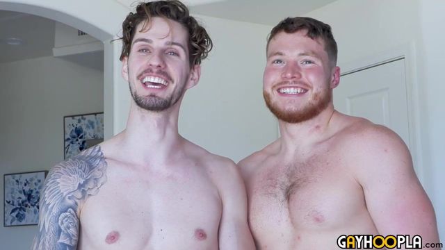 Cheery hotties Canelo Ment and Milo Dawson discussing their gay video - Gayhoopla
