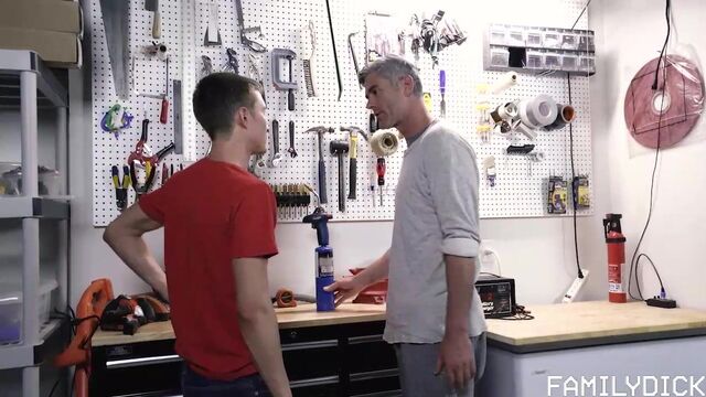 The stepdad who sent this in has been chatting with me for a while and he’s everything I love in a stepdaddy: clean-cut, handsome, nice cock, and pervy as hell. He’s shared some amazing stories with me, so I rushed to play this once I got it. In this special video, a young teenager is caught playing around with dangerous tools. His stepdad is quick to reprimand, but loves to indulge his stepson’s curious mind. He knows a stepfather is there to do more than just love his stepson. Part of the job involves guiding and teaching. And good stepdad knows when his boy is eager to learn. The stepdad told me that he’s been watching his stepson grow up, getting more handsome day after day. In this video, that admiration gets the better of him and he takes his stepson’s hole right there on his workbench. The young boy might not know it now, but he’s lucky to have a stepdad like that! And boy can he take a pounding!