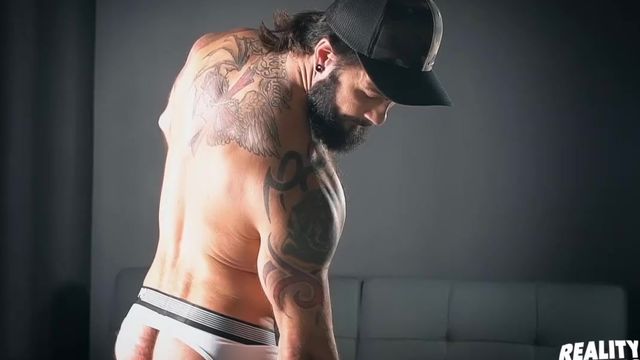 Well-built, chiseled Manuel wants you to work up a sweat just by watching his tattooed, slightly hairy body. The bearded hunk wants you to imagine toying with his pierced nipples while he slowly pulls out his huge, thick cock to jerk it until all his creamy, warm jizz is released.