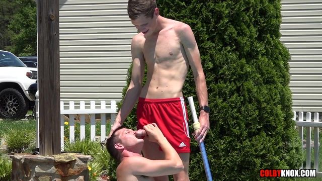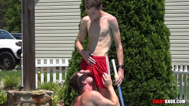 - Description: Mickey Knox has enjoyed spending the summer by the pool bonding with his dad’s new pool boy Cameron Taylor. Mickey has more than an eyeful watching Cameron work in thin shorts that give a clear outline to a long thick meaty cock. Mickey can only imagine how large that cock will grow when hard so he makes a move and is not disappointed to discover he’s packing nine and a half inches. Cameron knew he was working that day but he soon learns that working Mickey’s ass was much more enjoyable than cleaning the pool. From the diving board blow job to the pool side ass munching these guys will have you sweating along with them. Cameron has Mickey taking every inch of his beefy cock as he uses his mouth and ass. Cameron sits on the diving board while Mickey is in the water in front of him, pulling the board down so that he can access his cock. He takes the entire length of that long hard cock down his throat and they are already makes ripples in the pool. Cameron is hard and more horned that ever when he jumps into the water with Mickey to swim to the side. Once there, he pushes Mickey against the side and begins eating his tight ass. Having used his tongue to open his tight hole, Cameron begins pushing his giant cock inside of his ass and Mickey grits his teeth and grunts with each thrust inside. Cameron isn’t taking it easy on Mickey and grabs his shoulder to hold him in place and to pull him back onto his cock. Wanting to get deeper inside his ass, Cameron pushes Mickey on the sidewalk where he lies on top and grinds balls deep into that sweet bubble ass. Mickey is moaning louder and louder with each thrust of that giant hard shaft. Cameron likes getting aggressive and pulls Mickey back into the pool where he wraps his arm around his neck and fucks harder while chocking him. This ColbyKnox adult gay porn video will provide you all the motivation you need to rub out a giant load.
