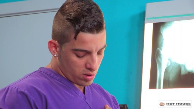 - Description: Scruffy nurse Jacob Peterson is giving new hire Jacob Taylor an orientation, but Taylor is more interested in getting off with Peterson. Peterson slides down Taylor's scrubs and goes down on his fat dick. Taylor pulls up his shirt, revealing defined abs and a beefy physique. Peterson uncovers his smooth ass, and Taylor uses his tongue to explore Peterson's tight hole. As Taylor uses his spit to lube Peterson's hole, Peterson jerks his huge, uncut cock. With Peterson in the doggy style position, Taylor slides in his giant, throbbing cock and fucks Peterson with powerful, dynamic thrusts. For another angle, Peterson lays back on the examination table with his leg in the air as Taylor gives him a deep dicking in missionary. Peterson's hairy pecs bulge as he jerks his cock, spewing a huge load onto his furry abs. Taylor strokes himself until his cum erupts, arcing across the room and landing on Peterson's throbbing cock and balls.