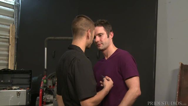 Rico is in his workshop when Cameron comes in to check on his pressure washer that Rico was supposed to fix. Rico shows Cameron that the motor is shot on it and says there is nothing he can do to get it to work. However, there is still the matter of payment for labor. Cameron does not want to pay him because it was not fixed, but Rico has other ideas on how Cameron can pay him. Cameron doesn't have any money on him but instead pulls out condoms from his pocket. Rico is really confused about it and laughs but then makes Cameron an offer they both can't refuse. He propositions him and soon they are lip locked. They start tearing their clothes off kissing all over each other. Cameron drops to his knees eagerly and begins sucking on Rico's uncut cock deep throating it and slobbering it all up. Rico who is excited and getting his payment in many different ways drops to his knees for a taste of Cameron's hard cock. Sooner after Rico is deep throating Cameron until he wants him to rim his smooth ass to get it ready for some good fucking. Cameron bends Rico over and shoves his face deep between Rico's furry butt cheeks. Cameron tongue fucks Rico until he can't handle it no more and needs that dick in his tight ass. Rico tells Cameron to sit in the char and as soon as he does Rico lowers himself on to that hard cock balls deep. Rico loves the feel of Cameron's dick and shows him just how much by grinding his cock like a pro. Cameron switches it up and bends Rico over fucking him doggy style until he flips him over on his back and cums all over Rico's cock and balls. Rico loves the site of all that cum and has Cameron get down on his knees and blasts his hot load all over his face. Rico is satisfied with his payment and tells Cameron to pack up his gear.Enjoy!