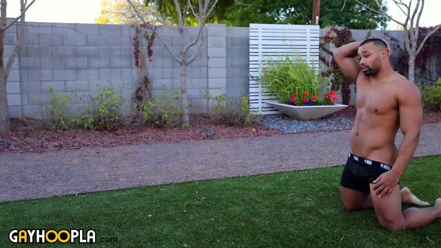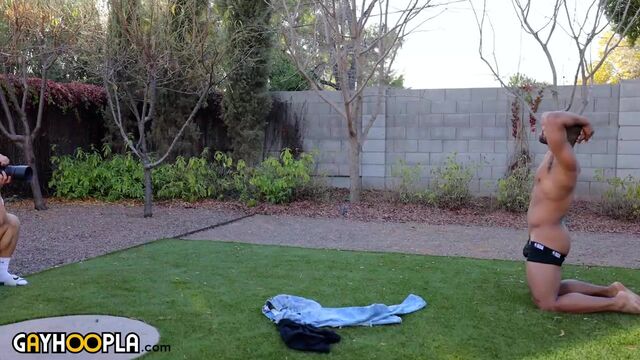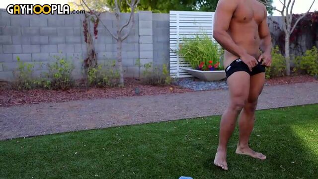 Hunky hottie Jaxson Briggs displaying his beefy body outdoors - Gayhoopla