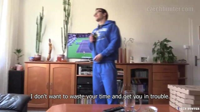 - Description: I was feeling really lazy today so I decided to try something new. Instead of looking for fun I should try to bring fun to me. You all know that I never hire professionals, which makes thing a bit complicated. Why not order pizza? Someone would have to deliver it. And that someone might be willing to earn extra cash. The first boy told me to fuck off but I was determined to get what I wanted. The second guy was more reasonable. It took some convincing before he agreed to follow me upstairs, though. I sat comfortably in my sofa and watched the pizza boy undressing. When I enjoyed the view at his sculptured body enough, I took off his nerdy glasses and let him work on my cock for a while. This big boy had a very small and tight asshole. I should order pizza more often.
