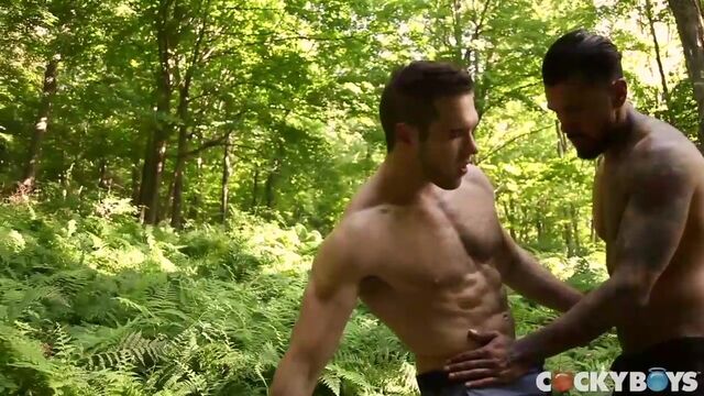 Alex Mecum and Boomer Banks are taking a walk down by the lake when they get the idea to try something new and risky. Alex grabs Boomer’s hand and leads him down to his favorite spot where he and Justin Matthews would go mess around. This time Alex is ready to take it a step further and he couldn’t have picked a better partner for it. As they make out by the lake, suddenly the clothes are off and their dicks are hard and that could only mean one thing.Boomer gets down on his knees to taste Alex’s rock hard cock and for a moment they completely forget that they’re in a high traffic area and anyone could see them at any point. After that Alex returns the favor and not only does he suck on Boomer’s huge meat but he also turns him around to get his tongue up his ass as well which Boomer seems to enjoy quite a bit because it gets him so horny that he tells Alex they need to go find a place to fuck right now. Once they’ve found a spot in the woods it is time to really go at it so Boomer starts out by eating and fingering Alex’s hungry hole before he sucks his cock again.Before he even realizes it, Boomer is 10 inches deep up Alex’s ass and is pounding away with no mercy. Alex is holding on for dear life as his ass receives the pounding of its lifetime before he gets on top of Boomer so he can ride him until the sun sets down. The guys then go back to the house for the grand finale where Alex fucks the cum out of Boomer and shoots his massive load all over his chest as well. By the time they’re done fucking each other’s brains out they are both out breath and there is cum everywhere. This one is for the books for sure!Enjoy,Jake Jaxson