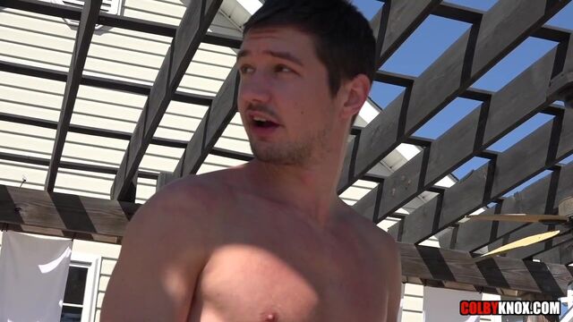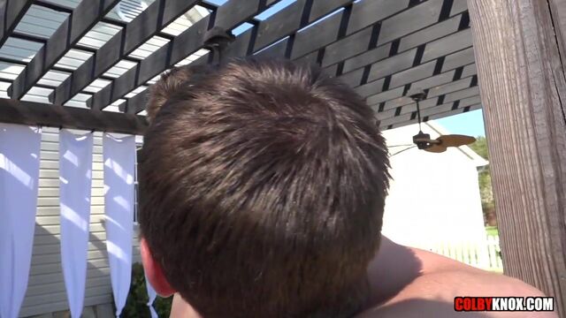 - Description: Colby Chambers has been working to improve his fencing skills by taking lessons from Oliver Saxon. This week’s lesson has the two athletic hunks out on the patio in full practice gear swinging and jabbing the steel swords at each other trying to gain an advantage. It’s hot outside and they have worked up a sweat and both of these guys are eyeing each other’s cock. No longer interested in swinging steel swords, Colby brings out his hard cock and Oliver is soon on his knees swallowing his thick man sword. Oliver slides down Colby’s sweatpants and underwear and starts swallowing his hard cock down his throat. These guys can’t keep their hands off each other as they are making out, licking, and exploring their hot bodies. Colby pushes Oliver against one of the patio columns, drops to his knees and starts deep throating his hard cock. That young cock tastes good and that has him wanting more. Pushing Oliver against another post, he buries his face in his ass and starts prepping his tight hole for his cock. Colby gets hard while tasting Oliver’s tight hole and begins pushing that thick throbbing meat deep in his man hole. The student soon becomes the teacher as Colby has Oliver backing into his thick cut man sword. Still standing against a post, Oliver has one leg propped up while Colby is behind him and grinding all seven inches deep inside his ass. He thrusts harder and harder and slaps his ass cheeks while fucking this young stud. Colby then has him bent over as he fucks him from behind and the feel of that hard cock inside has Oliver stroking out a huge load of warm cum. This fuck session comes to a climax with a hot load of cum creaming all over Oliver’s tight bubble ass.