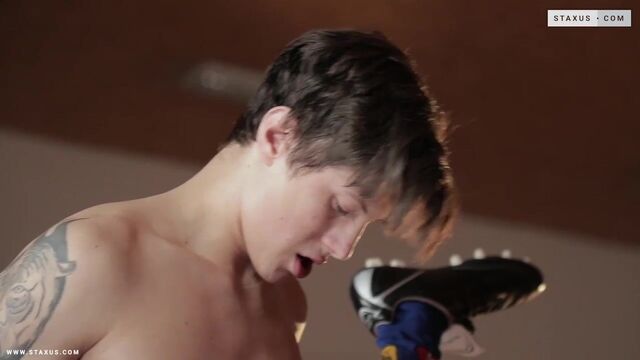 - Description: Football training can be thirsty work – which explains the amount of drinking bottles that young Jake Stark is having to look after at the start of this delicious escapade with STAXUS favourite, Rudy Stone. But it can clearly also be a very sexually stimulating exercise too given the way that these two lads quickly take the opportunity to enjoy an open-mouthed smooch together. Not that there’s anything lingering about this kiss, it must be said. Fact is Stone can’t wait to get inside his mate’s shorts to admire the handsome bulge in Stark’s pants; and to then explore even deeper, as he pulls out his buddy’s swollen shaft and sucks on every thick, meaty inch that’s now pulsating before him. Indeed, Stone’s ardent desire to pleasure his teammate continues apace, as he teebags his pal’s ball-sac and then invites Stark to join him for a hot, raunchy session of 69-ing.Not that you need to know too much about this horny little rook to realise that his ultimate intention here is to get his locks on Stark’s all-too-fuckable rump; as he first fingers the tight little pucker (sucking cock again as he does so), and then finally ploughs manfully for all he’s worth into the buddy’s guts. It’s a move that very visibly presses all the right buttons as far as Stark is concerned; as the fellow savours the ensuing pounding in a whole series of positions like a veritable pro. Little wonder the lad is soon spewing an almost incredulous spray of pent-up baby-brew all over his own belly; leaving Stone to seal the deal by coating Stark’s arsehole with cum, then allowing the boy to suck his cock clean!