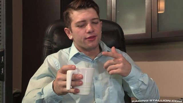 Sebastian Kross always finds faults in the staff -- but no one dares to say no when he wants to fuck them. As a joke, Mike De Marko jacks some 'extra cream' into Sebastian's coffee, and sends Chris Harder to deliver. When Sebastian drinks it, his only complaint is there's not enough sugar... so Chris must pay with his ass. His hands are all over Sebastian's body while they make out, and he gropes Sebastian's hard cock through his khakis. Sebastian takes over, pulling Chris' pants down, bending him over the desk and rimming him hard. Chris loves having Sebastian's tongue in his ass and he's so ready to be fucked, he grabs Sebastian's cock and shoves it in his hole. Fucking becomes an aerobic activity that leaves them breathless and sweating. They cool down with mutual blow jobs in the stairwell, then Chris mounts Sebastian's cock again in a spread-eagle fuck that culminates with Chris upending himself to a shoulder stand while Sebastian drives a finger into his prostate until they both shoot smoldering loads in Chris' face.