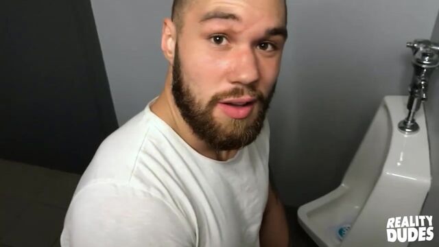 We love bathrooms. Any place with that much exposed junk is bound to be a good spot for some hot action. And man was that ever true for these two muscle hunks who turned a public bathroom into their private playroom. You do not want to miss the rapid-fire cumming when they get caught in the act!