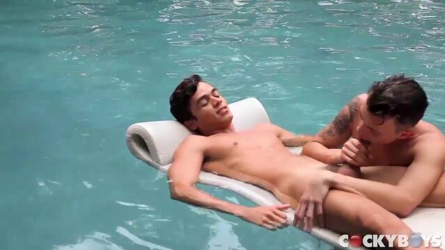 Ashton Summers and Frankie V are goofing around in the pool and soaking up the last few sunny days of summer. But strutting around each other with their ripped bodies and cute devilish smiles only leads to one thing. No one can last for long before wanting to get completely naked and we all know that’s when the real fun begins.Once the swim trunks are off Ashton tells Frankie that what he really likes is getting his cock sucked real good and Frankie is all smiles as he realizes he’s finally about to get a taste of Ashton’s big cock. Without wasting any time, Frankie quickly shoves the whole thing down his throat and asks Ashton “Like that?” After some seriously intense throat action in the pool Ashton suggests that they get out of the pool and go by the table where he can really nail Frankie’s hungry hole. But first - rimming! Ashton takes his time to get a taste of Frankie’s hole and make him want his dick even more than he already does.When Frankie is finally ready for it, Ashton flips him around so he can hit it from behind and aggressively starts plowing Frankie’s eager hole. After that they move to the chair so that Frankie can sit on top of Ashton and really ride him like a true hungry bottom is supposed to before laying back on the table to let Ashton finish him off missionary style. By the end of it, Frankie is completely covered in cum and can’t take the smile off his face even if he tried. What a perfect way to end the summer!Enjoy,Jake Jaxson
