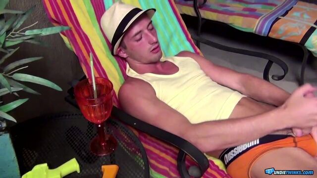 Super sexy twink JD Phoenix strips down to his hot orange Aussiebyms poolside at night to work on his horny cock! JD flips over and rubs his bubble butt and hungry hole on top of and under his sexy briefs and then shoots a huge load through them!