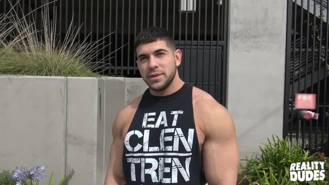 I saw super beefy Damien S coming from the gym. He was pretty happy with any excuse to show off his tight body. With cars passing, he showed me his assets, but it was time to make it a bit more private at my hotel room. With a little convincing, he let me fuck his tight Str8 muscled ass until I came all over his sculpted pecks.
