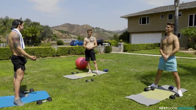 Scott Finn and Michael Del Ray have a great workout with their hot trainer. They get worked up and get their muscles pumping for more than just outdoor exercise and get ready to stretch more than their training intended.