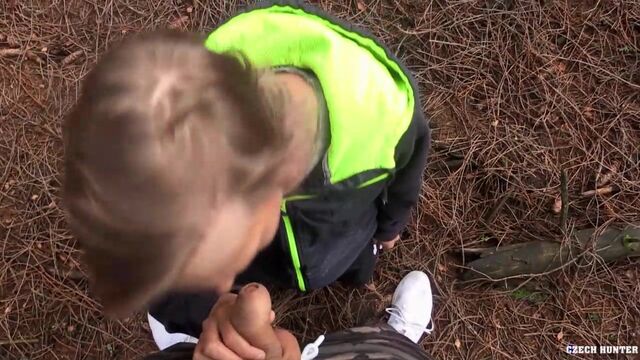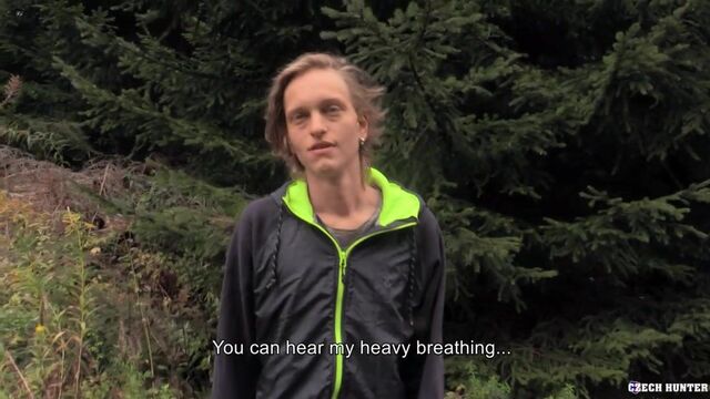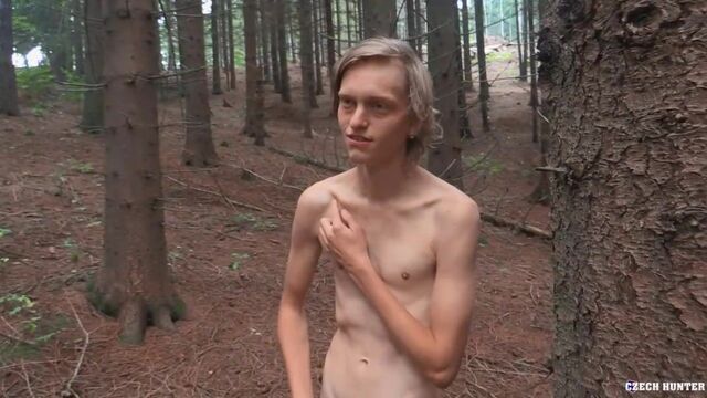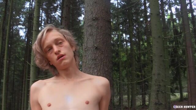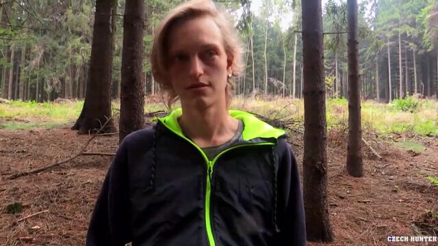 Tired-looking long-haired twink fucked in the woods - Czech Hunter