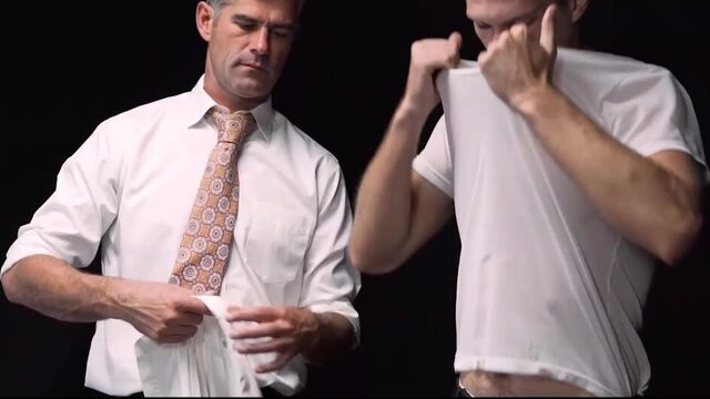 Elder Dobrovnik lathered up his muscular, long body as he showered off the remaining oils from his skin. His body was still energized from his recent encounter with President Oaks. Having done as he was asked by the Priesthood and brought Elder Esplin back into the fold, he showed that he was not only loyal and obedient, but that he could serve the broader needs of the Order as well. Shortly after completing this task he was anointed by the strong, skilled hands of the salt and pepper president, feeling him activate every cell on his flesh until he was charged with sensitivity and ecstasy. His soapy hands carefully moved between the cheeks of his firm ass, still pleasantly sore from the hot fucking he'd received. It was almost a week later when he was informed that his presence had been requested at the temple by President Ballard. The Russian convert had not seen this man since he'd instructed his nephew to fuck Dobrovnik in front of him. Elder Dobrovnik had thoroughly enjoyed the young man's cock and the pounding he received, but deep down he knew the most exciting part of it was seeing President Ballard's face light up with pride and satisfaction. Being watched certainly proved to be an unexpected turn on, but more than anything he wanted to give pleasure to the older leader. Once at the temple, Elder Dobrovnik was led into a dark chamber. President Oaks was standing strong and still in the corner of the room. Just in front of him appeared to be a table covered by a black sheet. The look of confusion on his face must have cued President Oaks, who proceed to remove the sheet and reveal a long line of black pegs. Elder Dobrovnik noted that they increased in size, larger and larger, until the biggest one finished just in front of where the gruff looking President Ballard was seated. "It's a Priesthood Stretcher," Ballard explained, carefully studying the reaction of the young elder's face. "Your body is strong, but it is not yet ready.” Elder Dobrovnik understood and wanted to be opened, though looking down the line he was nervous that he may not be able to do all that was asked of him. The tall elder was directed to undress by President Oaks, who shared with him a quick look of support and encouragement. Dobrovnik was glad he was there. Somehow the president made him feel safer, like a stepfather figure who was there to see him through this challenge. Of course it helped that as soon as he was completely undressed, this sexy stepdaddy began to oil his body, awakening his erection and hunger to serve. "Proceed to the first peg," boomed President Ballard. President Oaks carefully prepared the black knob with sacred oil and guided the nervous elder to sit. Dobrovnik took a deep breath and felt the strange object push open the tight walls of his sphincter, delicately filling him until his soft ass made contact with the dark wooden table. He couldn't help but touch his cock, now harder than the surface upon which he sat. Not only did the peg feel amazing inside his hole, he was incredibly turned on to have the eyes of President Oaks and Ballard locked on his every move. Just as he felt comfortable, the bearded leader's voice boomed, "Proceed to the next peg." He slowly dismounted from the first knob as President Oaks prepared the next one. It was slightly bigger than the first, making him slightly nervous. Nevertheless his own ambition to continue and the supportive guidance of President Oaks gave him the courage to take his place on the next one. Once he got to the third peg, he felt the first signs of real struggle. The dark object just barely slipped inside him, causing his body to shake as it narrowly pushed past his sphincter. Sensing this change, President Oaks took his oiled hand to the elder's cock, stroking it slowly, moving up and down the shaft of his rock hard member. Elder Dobrovnik moaned and breathed deep as the handsome leader smiled and whispered to him to keep going and keep riding. "All the way up, all the way down... Good boy." Those last words were enough to completely excite and relieve the boy of his tension and doubt. Just as the encouragement hit his ear, he could feel his ass open in a way he'd not felt before, completely yielding to the size of peg, wrapping around it like a sheath. President Ballard's eyes focused, excited by the progress of the handsome boy, eager to see him take more and more. Concealing his own erection, President Ballard's gravelly voice spoke out, "Proceed to the next peg." Elder Dobrovnik obeyed and moved closer to him. Soon, President Ballard could no longer contain his desire to truly dominate the young man. He ordered Dobrovnik to turn around, giving him the chance to feel his well-worn hole. He knew his thick stepdaddy dick would only continue to stretch him out. He ran his fingers up and down his ass, readying the young missionary for his true test. As he studied his backside, Ballard removed his all of clothing, releasing his swollen member from the tight cage of his sacred garments. Bending him over the table of pegs, President Ballard pressed his veiny cock against the searing hot hole of Elder Dobrovnik, feeling him yield to his girth and size, taking him in millimeters at a time. As the young man struggled and trembled, the president whispered under his breath, “good boy.” He felt the elder’s tight sphincter open up as he slowly managed to push his thick rod completely inside the eager boy...