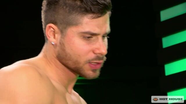 Fabio Acconi leans back, stroking his hefty cock when gorgeous Dorian Ferro takes notice and helps himself to a mouthful of Fabio's meat. He reaches back and teases his own hole with his fingers as he deepthroats Fabio. Then, Dorian spears his tongue around Fabio's scruffy taint. Fabio returns the favor with a few fingers and his tongue deep in Dorian's talented hole. He takes it up a notch and fucks Dorian with a shiny steel dildo. Dorian squats and takes more toys up his tail end until Fabio replaces it with his fat cock. He pounds relentlessly into Dorian's hole, hitting his prostate until Dorian oozes his load on the floor. Fabio pulls his cock from Dorian and milks it all over Dorian's delicious bubble butt.
