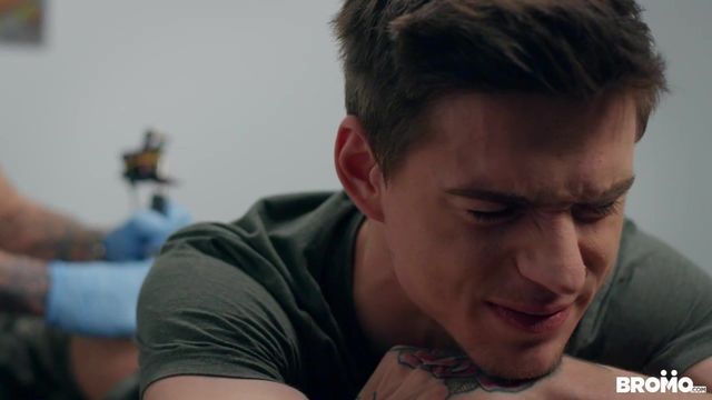 When cute twink Lev Ivankov walks into his studio looking for a tattoo on his perky butt, tattoo artist Fly Tatem can't wait to get his hands on that pert posterior. Fly starts getting hard as soon as Lev pulls down his pants and lies down on the table, and Fly jacks his dick while tattooing Lev's smooth skin. Lev needs a break from the needle, so Fly eats his ass and fingers the twink as Lev begins stroking Fly's cock, then Lev puts his ass up for that tattooed top to fuck him doggystyle. Lev rides Fly's cock, then Fly fucks his mouth before pounding that ass some more till the top blows his load right on Lev's new tat.