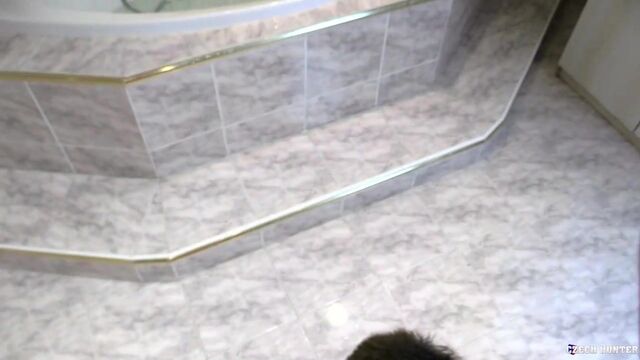 I wanted to treat myself, so I booked some time at a spa. A warm bath seemed like a perfect idea in this terrible weather. I kept my camera rolling just in case the place had a handsome receptionist. To my surprise, the spa was closed and the only person to be found there was a gardener. Thank god I met him because he had spare keys from the building and let me inside. The guy was only 23 years old and really cute. He was a bit grumpy at first but as soon as I gave him some cash, he became much easier. It was raining and the poor dude was freezing outside, taking care of the garden... a quick break in a hot tub had to be very tempting. So, I got myself a friend for a few Crowns and he took good care of me. Hot tub sex with a young and manly gardener... it was almost like in a romantic movie.