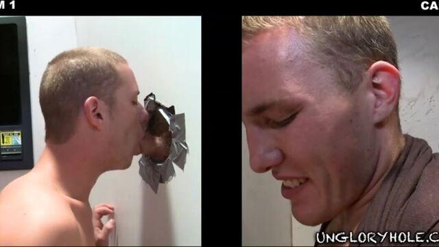 Today we're trying to get Cody the best blow-job he's ever had in his life. The Ungloryhole takes on all cummers. He has a girl but Cody is kind of tired of the same old thing. This guy wants to spice up his life. Fuck it! Why not stick your dick through a hole in the wall. That'll do the trick. We let him know there's a sexy chick waiting. So he walks to the back of the adult store and enters the room of the Ungloryhole. What a fool. He really thinks the sexy Alexis Faux is doing the cock-sucking. Not! Cody shoves his cock through the wall and Andrew takes over. The way Cody moaned. Seemed like Andrew really gave him what we said he'll get. That's an awesome blow-job. Enjoy!